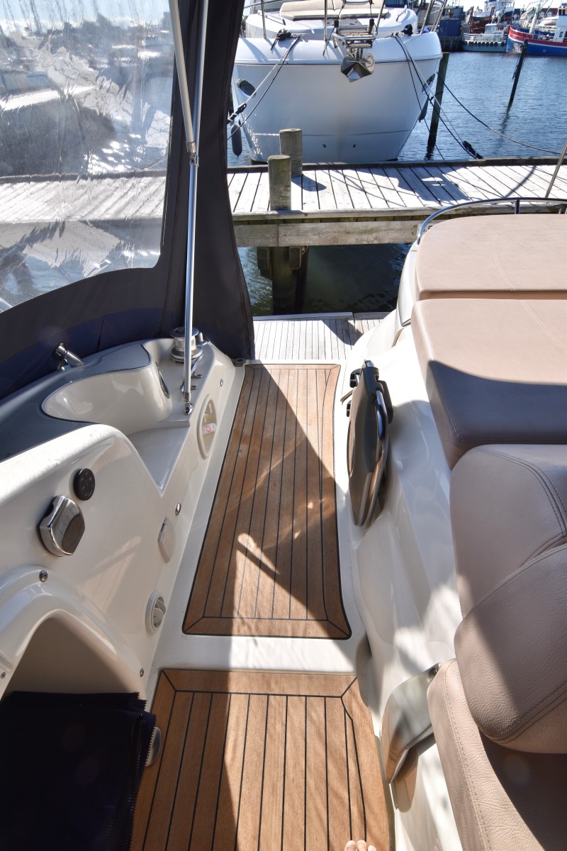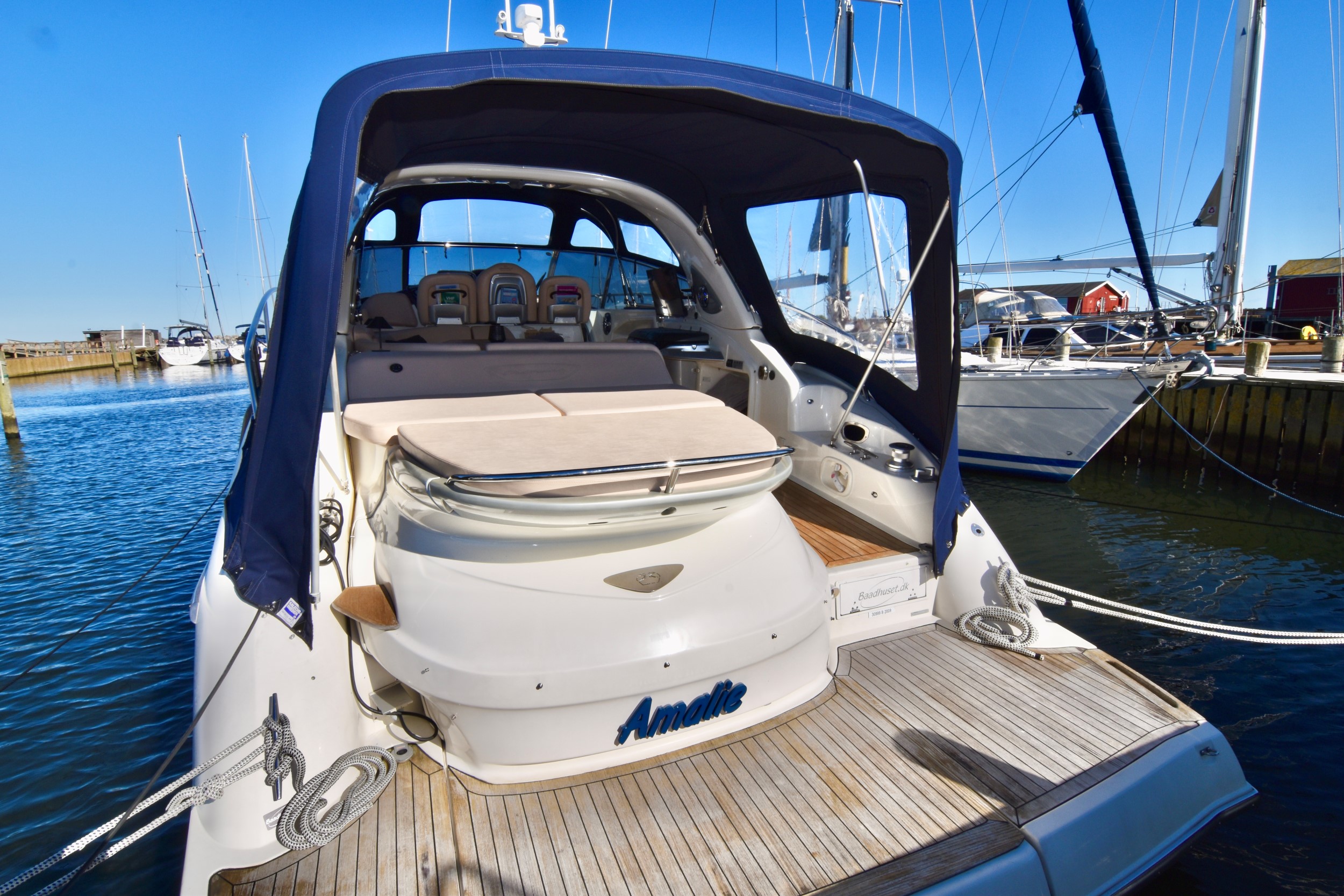 Agter finder man en rummelig dobbelt solseng til afslapning og solbadning. Om ønsket kan området afskærmes med den nyinstallerede kaleche, som er udstyret med vindue for både lysindfald og læ.