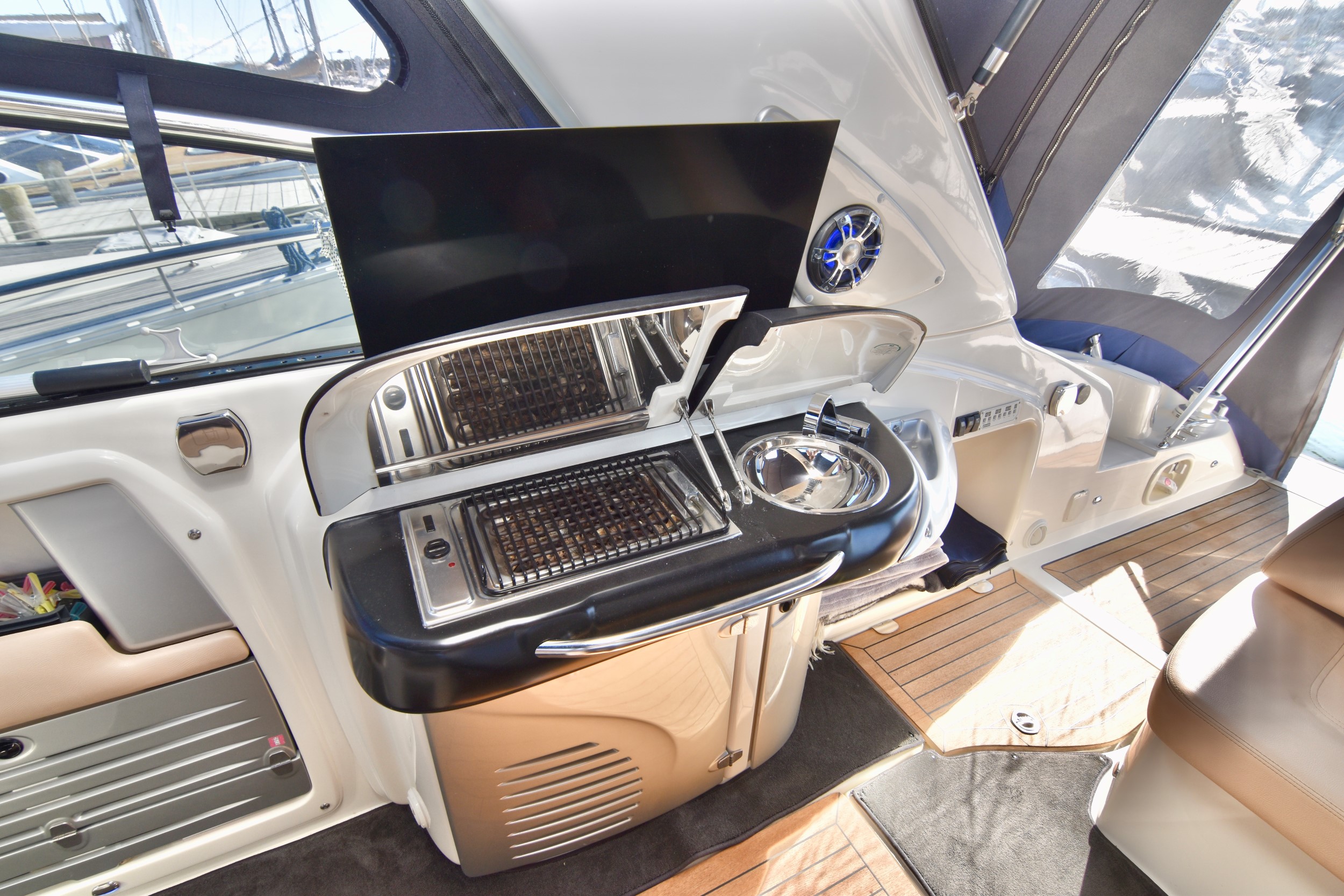 I cockpittet fremstår en indbydende siddegruppe med god plads til socialt samvær. Området er desuden udstyret med vask med trykvand samt en grill – perfekt til udendørs madlavning.