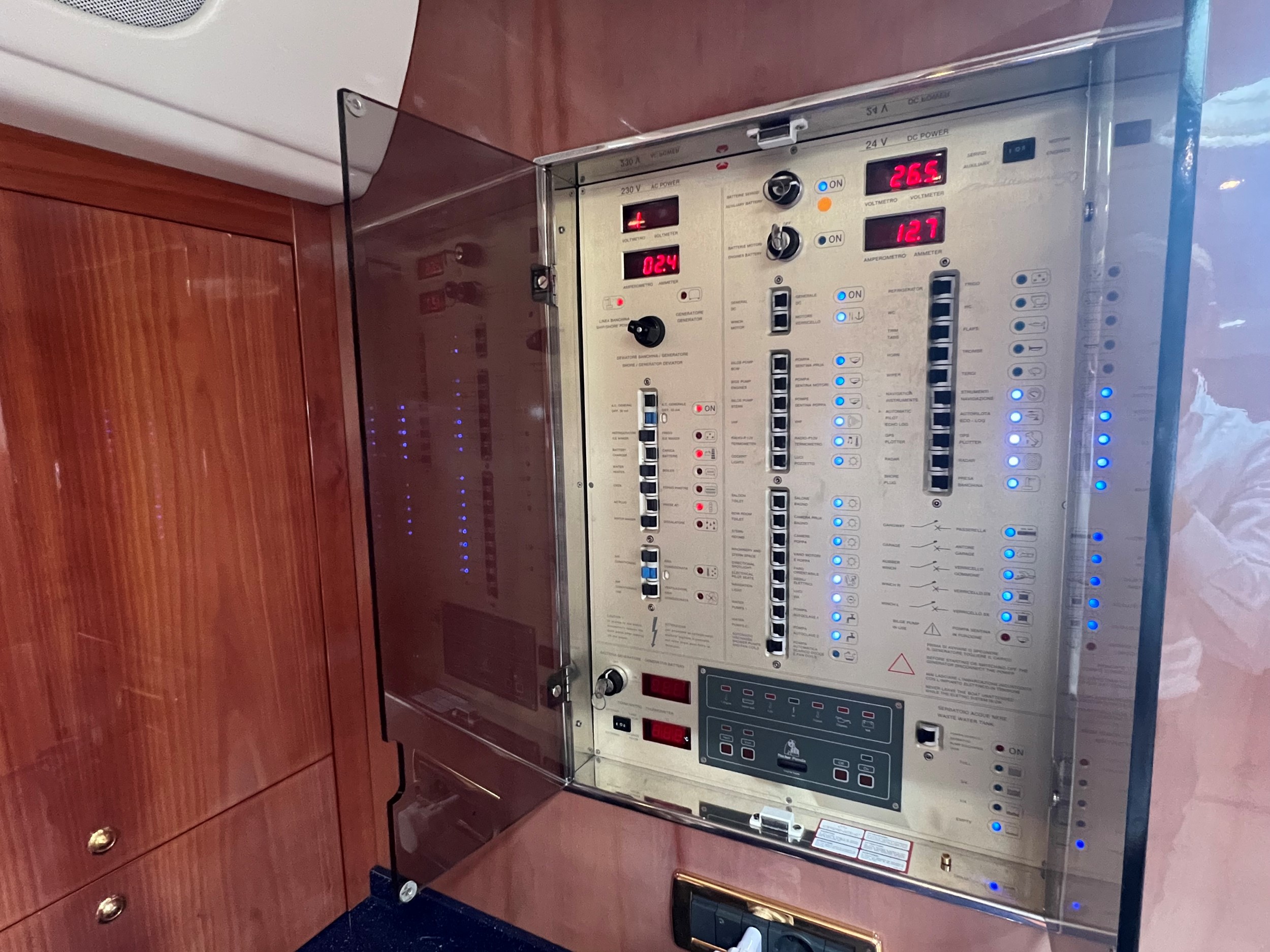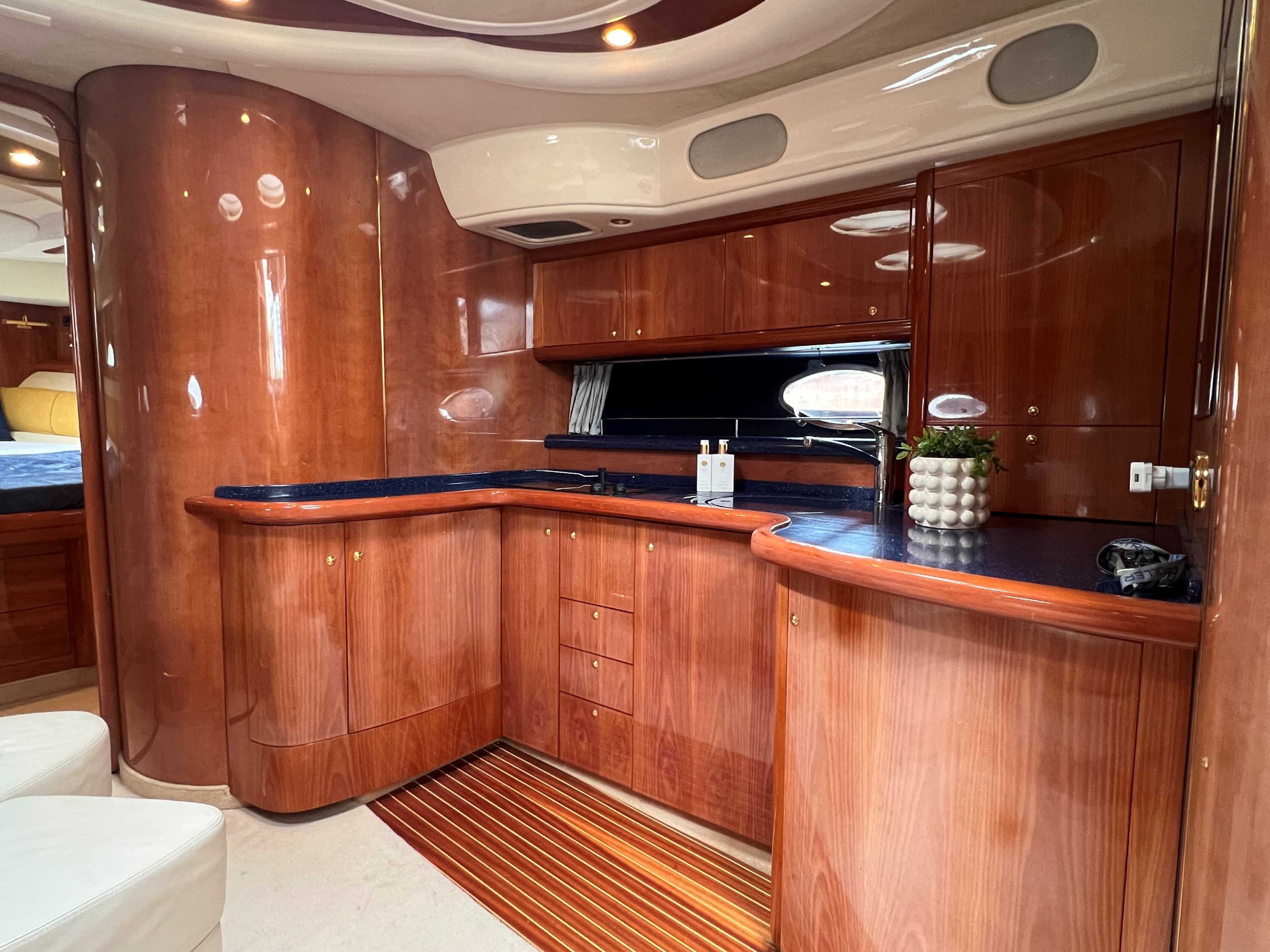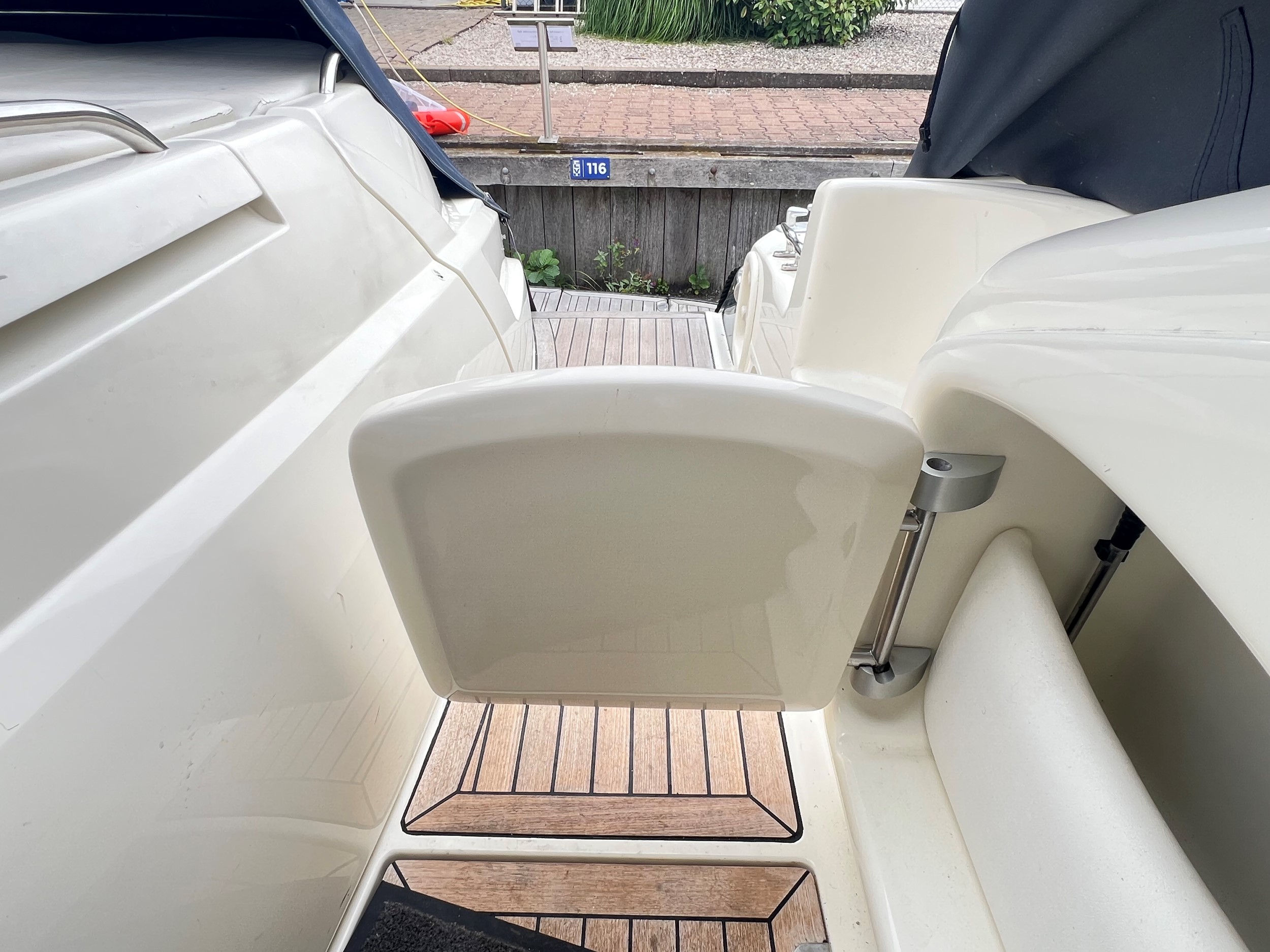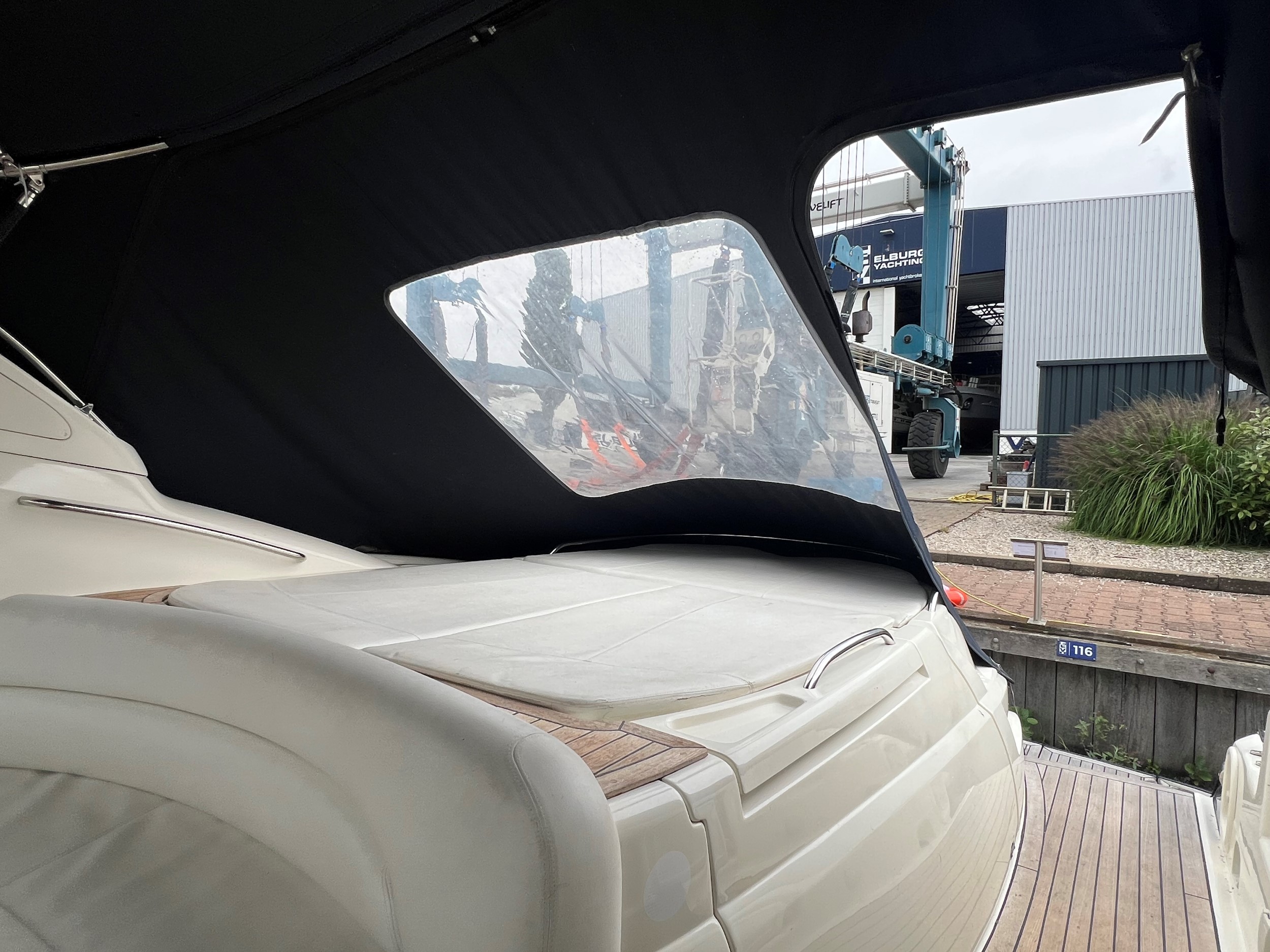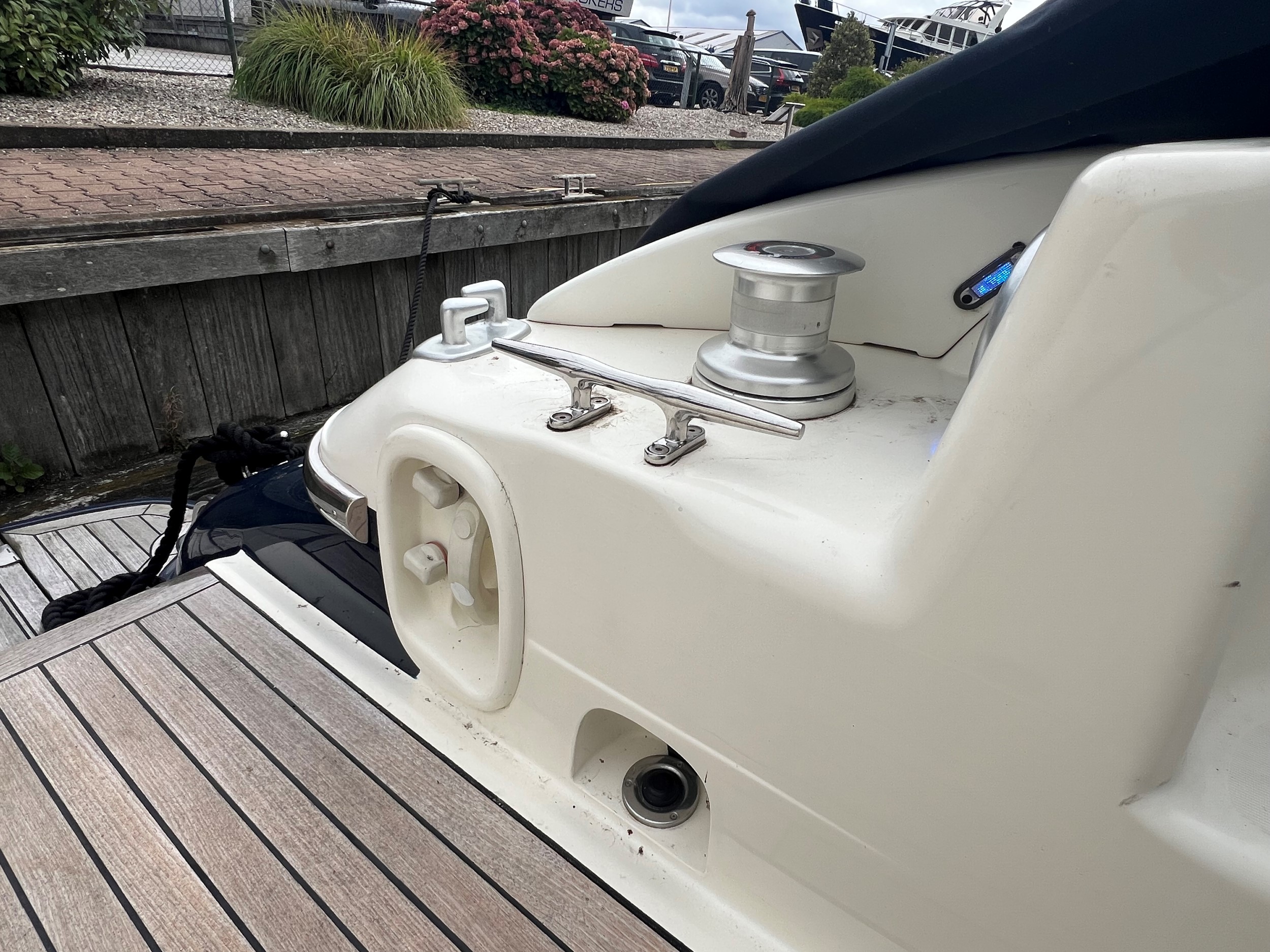Der er fenderholdere i rustfrit stål, jollegarage med elektrisk spil (jolle medfølger ikke), trin til styrbord sidedæk, , cockpitbelysning, Yachtcontroller-fjernbetjening til betjening af bov- og hækpropeller og begge hovedmotorer gør fortøjning let, Webasto dieselvarme i hele skibet + åbent cockpit, fortøjningsspil på bagbord og styrbord side på agterdækket, solseng på agterdækket med aftagelige hynder, hydraulisk sammenklappelig landgangsbro.