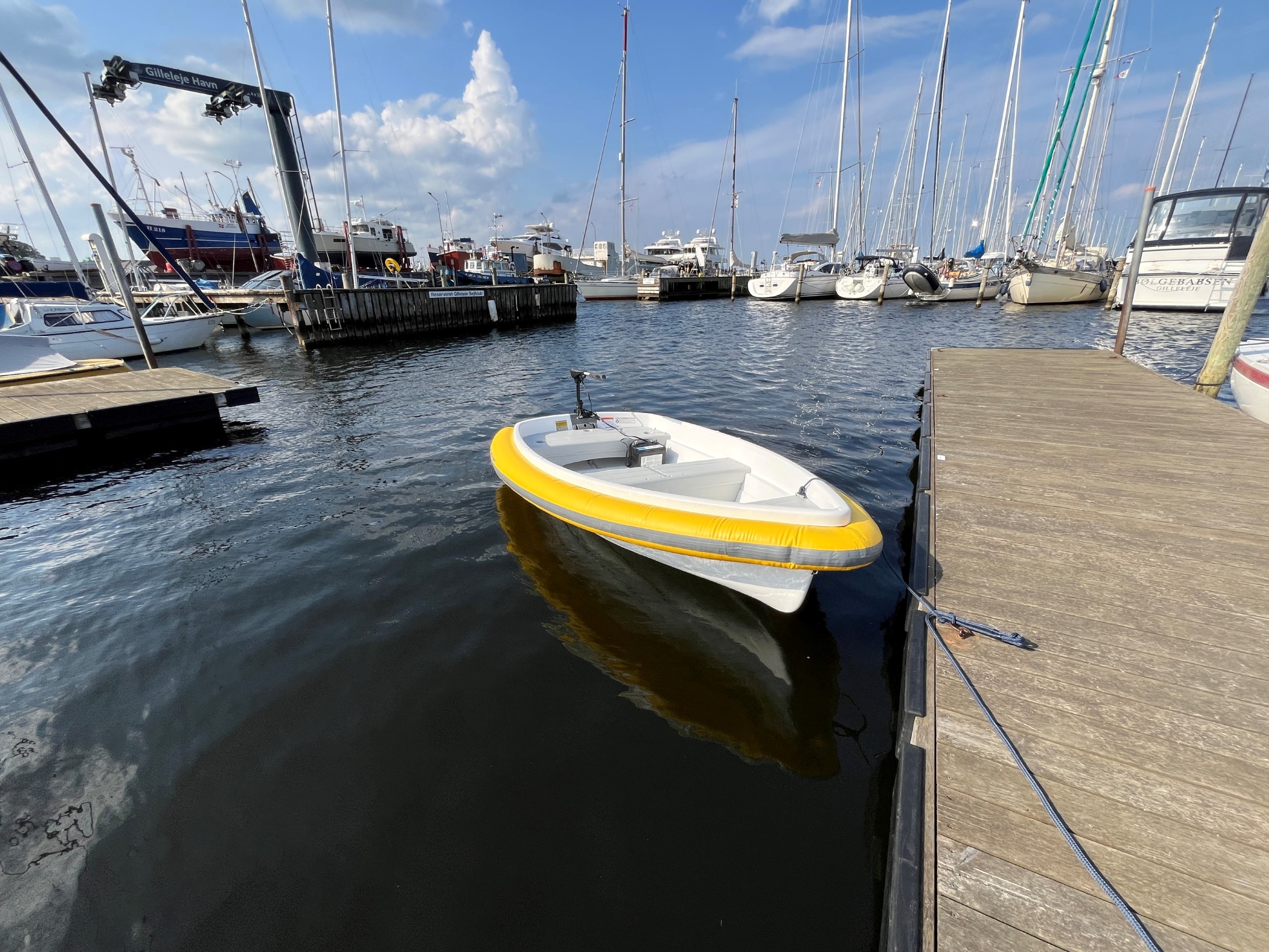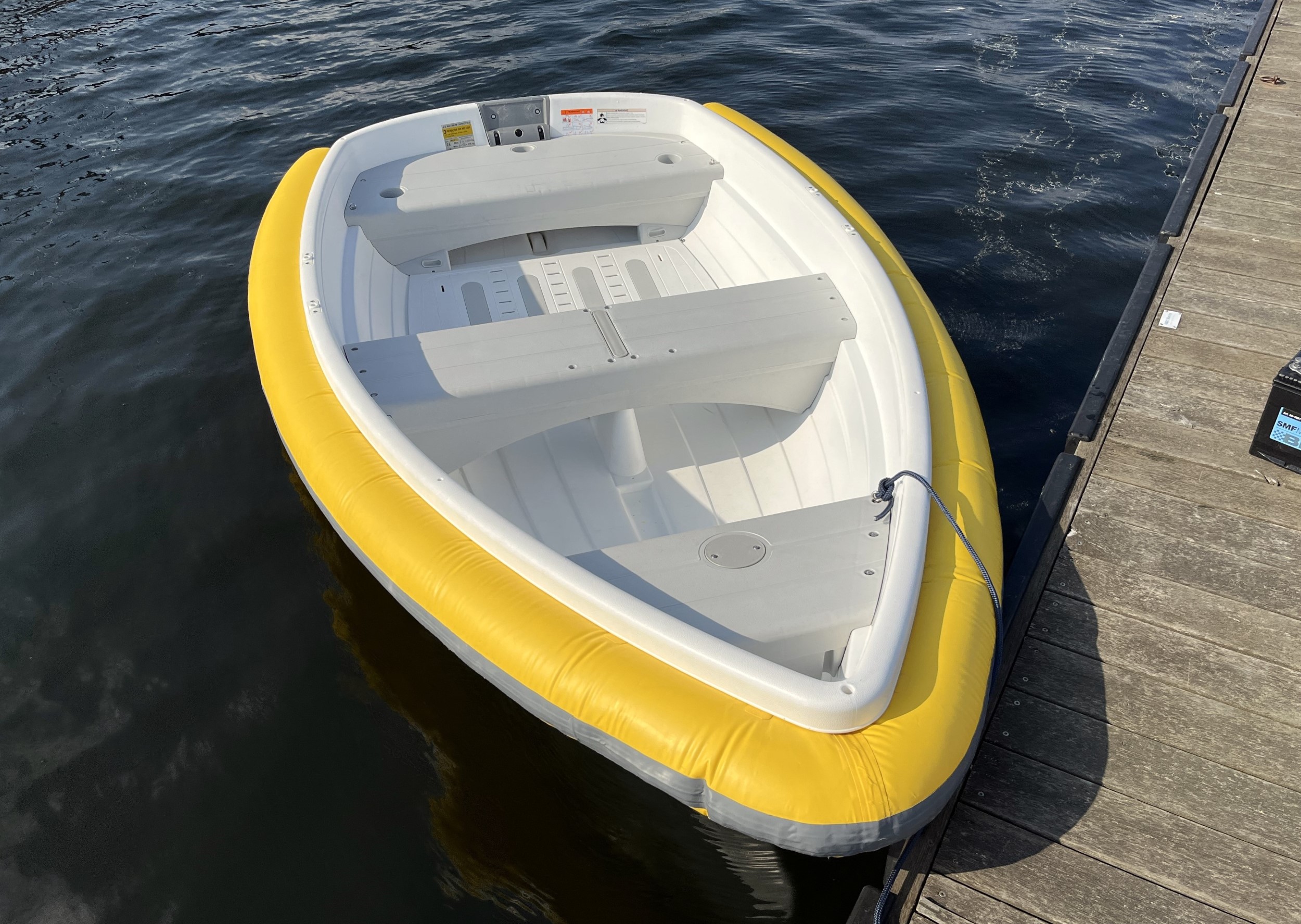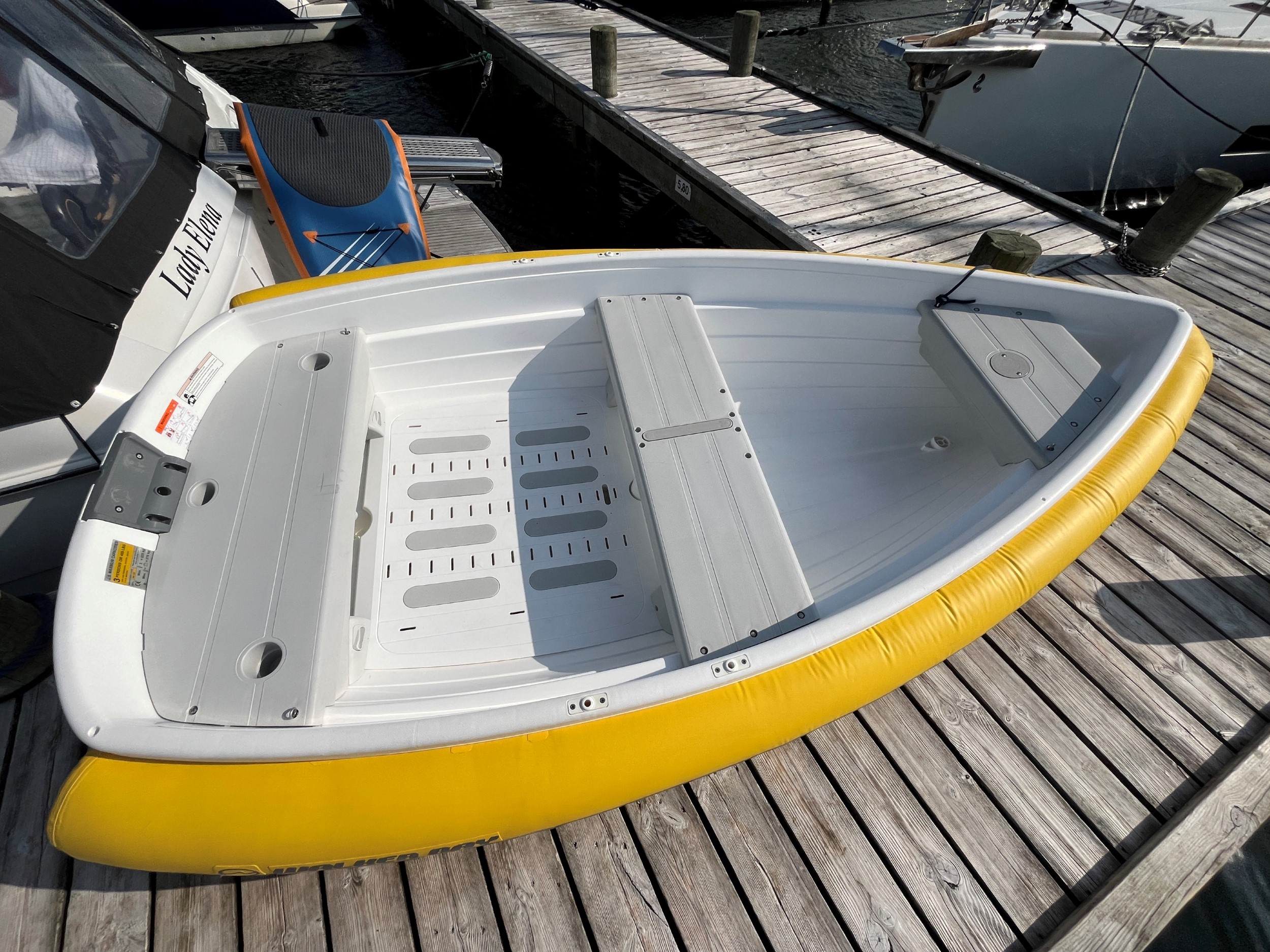 Den er synkefri og udstyret med løfteøjer, så den nemt kan hejses op på en større båd via kran eller gangway – ideel som tender eller til korte ture langs kysten.